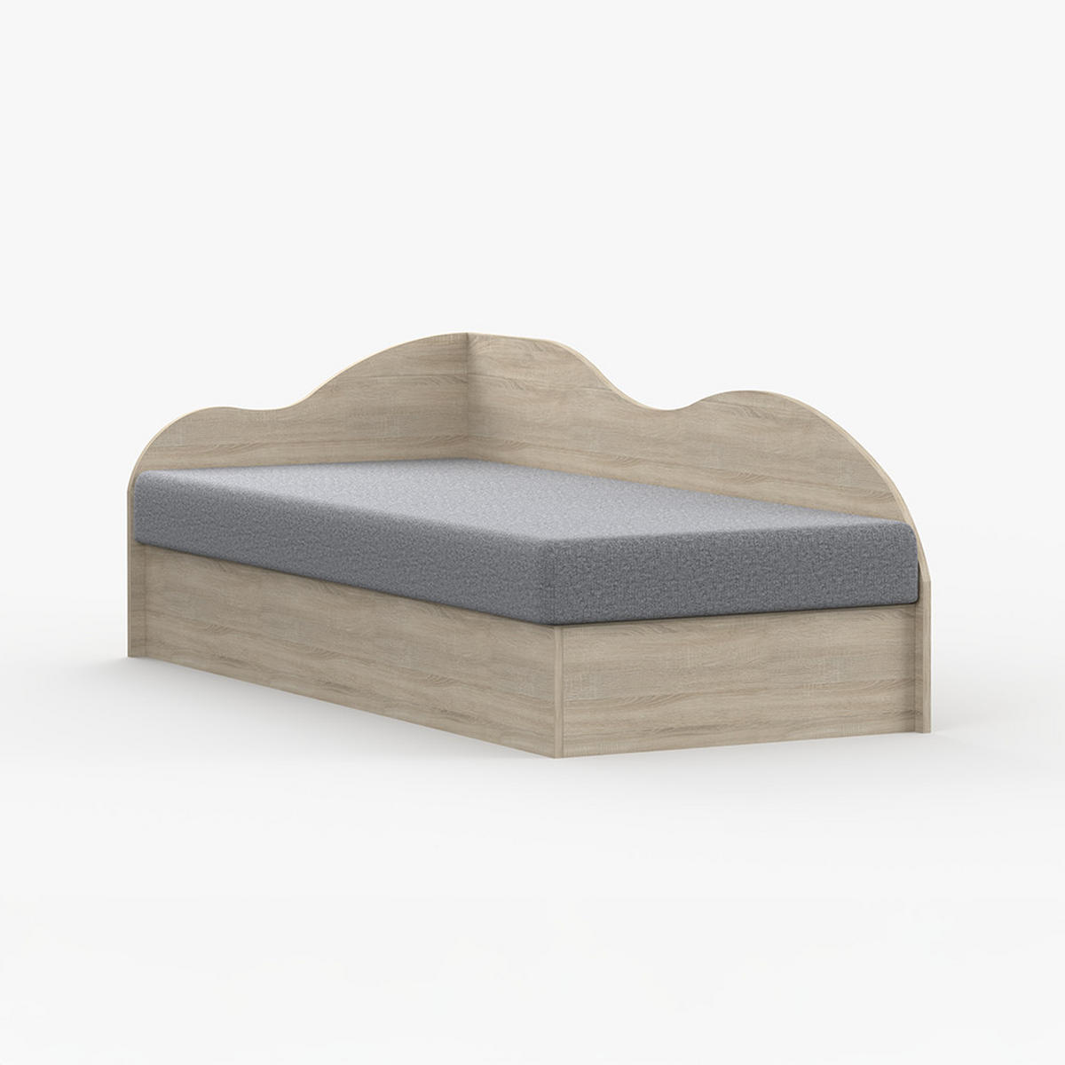 Das Bett mit den geschwungenen Bettrahmen harmoniert perfekt mit verschiedenen Accessoires im Jugendzimmer und schafft eine einladende, stimmungsvolle Atmosphäre.