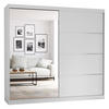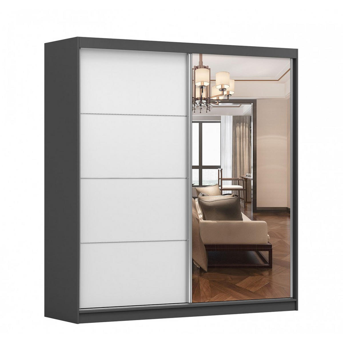 Erfüllen Sie sich Ihren Traum und gestalten Sie Ihr Schlafzimmer mit dem Schwebetürenschrank Multi 42, um eine gemütliche Atmosphäre zu schaffen. Großes Stauraumangebot und Funktionalität kombiniert mit Modernität - das sind die Hauptmerkmale des Schrankes Multi 42. Dank seiner Vielseitigkeit und Funktionalität passt der Schwebetürenschrank Multi 42 in jedes Schlafzimmer, Jugendzimmer und Gästezimmer. Das Schrankinnere ist in zwei Teile unterteilt, die mit Einlegeböden und einer Kleiderstange ausgestattet sind. Der geräumige Innenraum bietet Platz für Kleider, Hemden, Blusen, T-Shirts und Accessoires. Eine Besonderheit des Schrankes ist das einfache Öffnen der Türen mit nur einer Handbewegung. Mit breiten einfarbigen Türen in Mattlack und einem Spiegel an einer Tür wirkt der Kleiderschrank modern und puristisch. Sie können frei entscheiden, ob Sie die eine Schranktür mit dekorativen Leisten veredeln wollen.