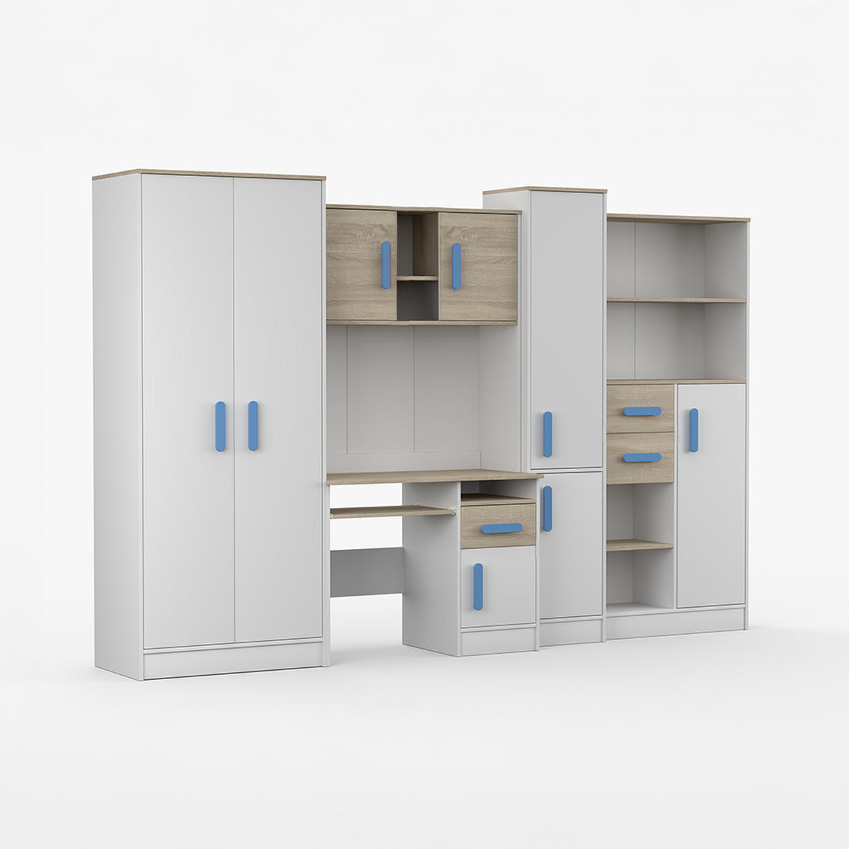 Die Kinderzimmerwohnwand Markus ist eine schöne, moderne, zeitgenössische Anbauwand für jedes geräumige Kinder-und Jugendzimmer. Wohnwand Markus ist ein topmodernes, perfekt profiliertes Möbelstück für die Kleinen und Großen.