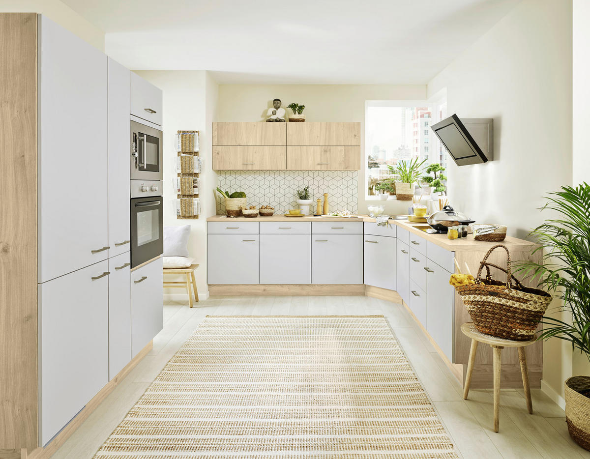 Impuls ECKKÜCHE in Eichefarben, Hellgrau