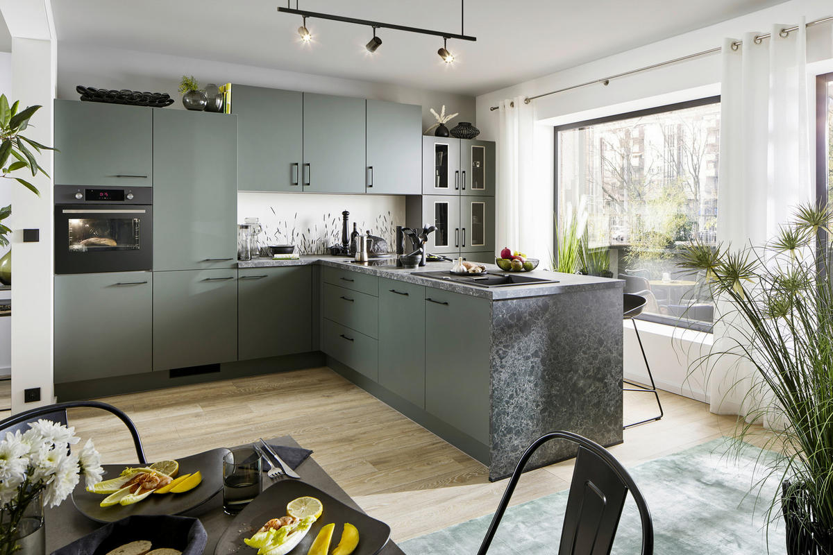 Impuls KÜCHENLEERBLOCK 390 cm in Grün, Schieferfarben