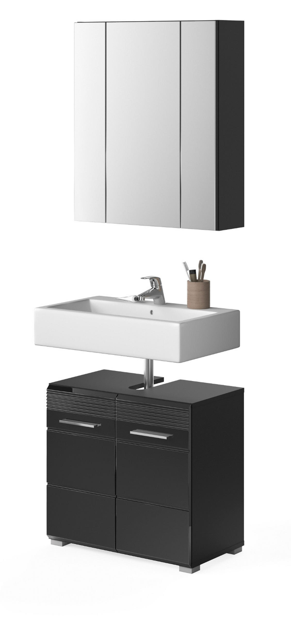 Inn.Furn BADMÖBEL-SET schwarz Hochglanz, 2-teilig 60 cm, Badkombination mit Spiegelschrank
