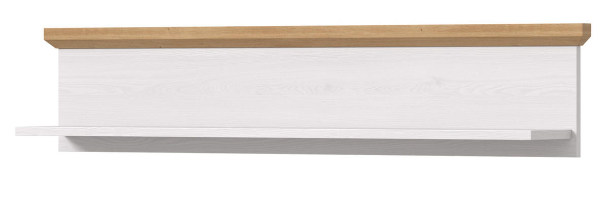 Wandboard "Mirano", weiße Lärche und Eiche Artisan, Landhausstil, 110 x 23 cmDas Wandboard "Mirano" vereint zeitlose Eleganz mit funktionaler Raffinesse. Im wohnlichen Landhausstil gehalten, macht es im Dekor in weißer Sibiu Lärche mit gekälkter Optik, harmonisch ergänzt von Absetzungen im Dekor Artisan Eiche, eine gute Figur in Ihrem Wohn- oder Esszimmer. Dieses hochwertige Wandregal aus FSC®-zertifiziertem Holzwerkstoff ist eine umweltfreundliche Wahl. Mit dem breiten Regalboden bietet es Platz für Bücher und Ihre Lieblings-Deko. Mit seinen Maßen von 110 x 23 x 18 cm passt das Wandboard in jeden Wohn- und Essbereich.