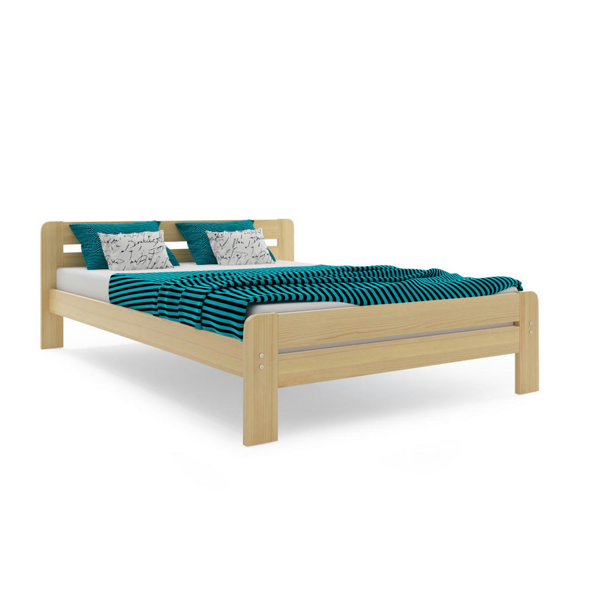 Der Rahmen des Bettes ist aus FSC-zertifiziertem Kiefernholz gefertigt. Die abgerundeten Kanten verhindern Verletzungen und sorgen für eine sichere Nutzung.