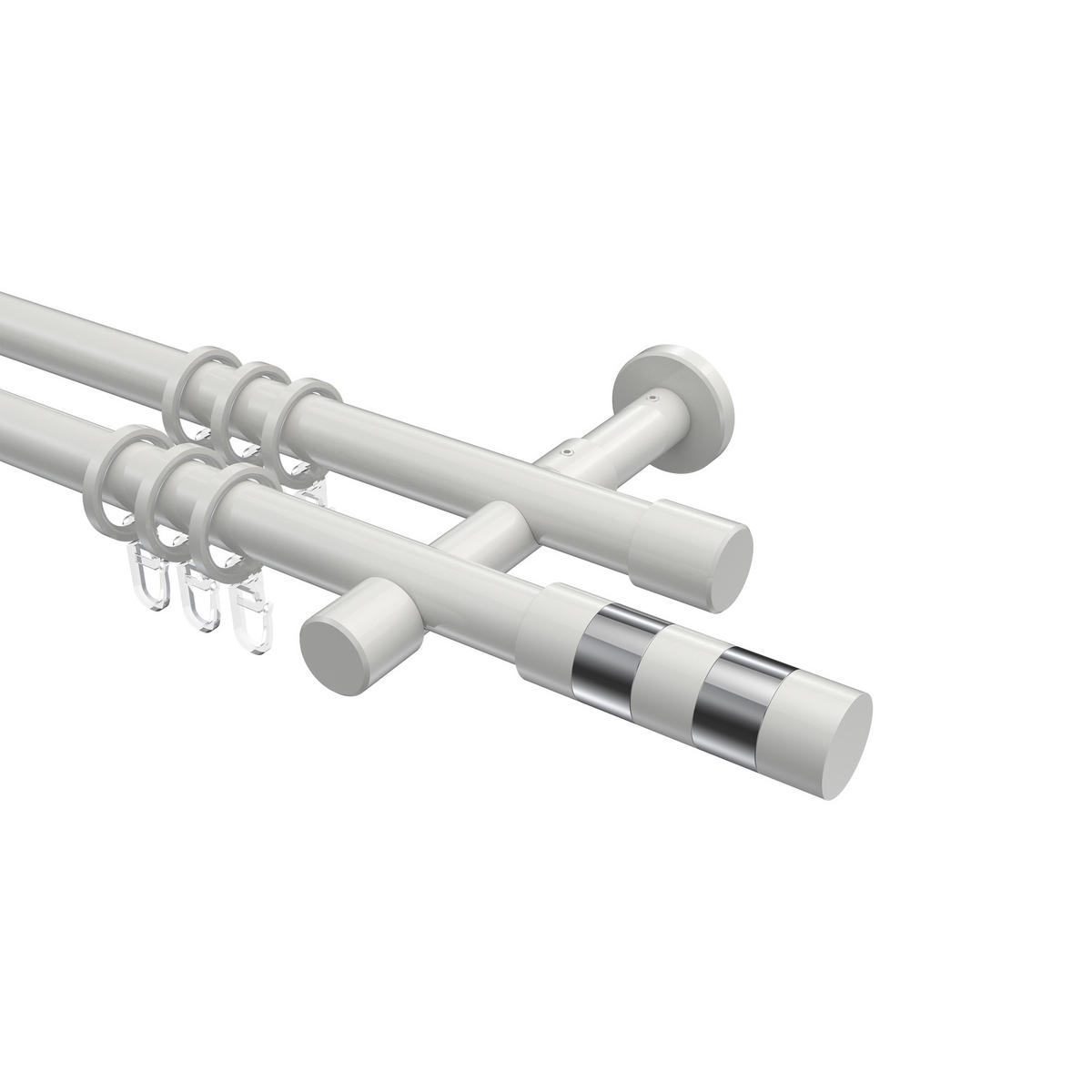 Informationen zu GARDINENSTANGE Prestige Mavell 520 cm (geteilt in 4 x 130 cm), 2-läufig, 20 mm Ø Weiß: