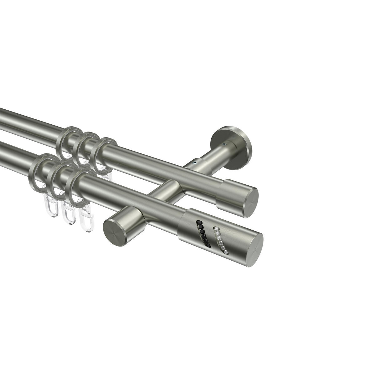 Informationen zu GARDINENSTANGE Prestige Zoena 260 cm (geteilt in 2 x 130 cm), 2-läufig, 20 mm Ø Edelstahl-Optik: