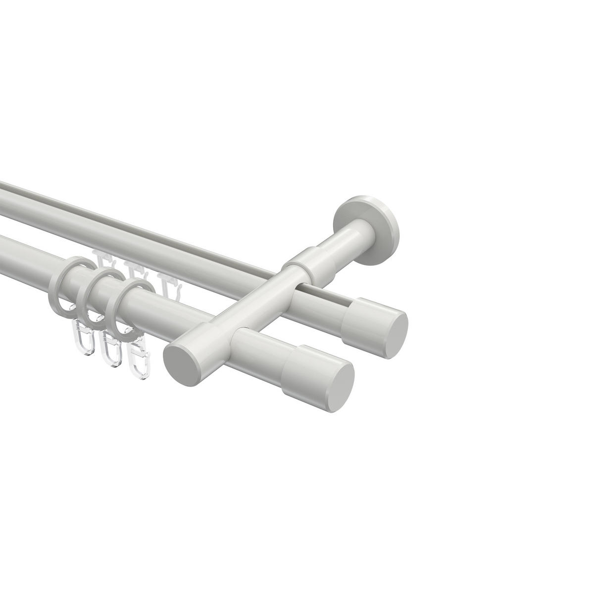 Informationen zu GARDINENSTANGE RUNDROHR-INNENLAUF Prestige Santo 420 cm (geteilt in 3 x 140 cm), 2-läufig, 20 mm Ø Weiß: