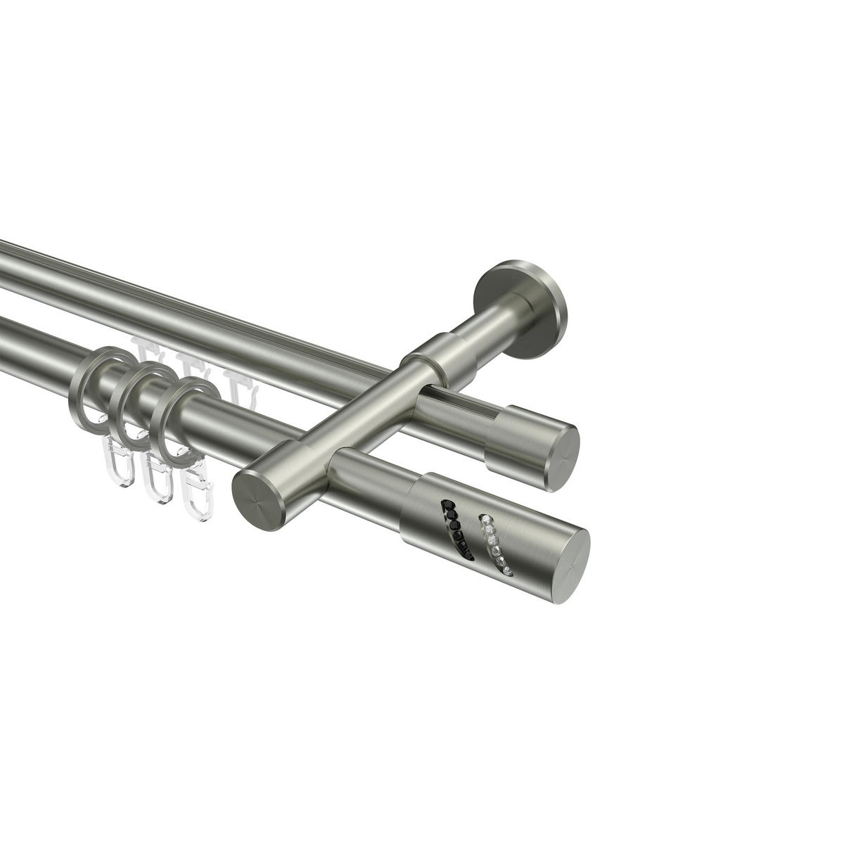 Informationen zu GARDINENSTANGE RUNDROHR-INNENLAUF Prestige Zoena 520 cm (geteilt in 4 x 130 cm), 2-läufig, 20 mm Ø Edelstahl-Optik: