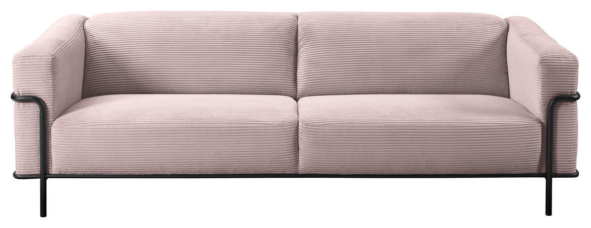 Sehenswerter Hingucker Das Polstermöbel unterstreicht mit seiner hellen Farbgebung in Rosa eine harmonische Atmosphäre. Komplettiert wird das Design durch das Rundrohr aus mattem Eisen in Schwarz. Ab auf Ihr rosafarbenes 3-Sitzer-Sofa mit Cord-Bezug!