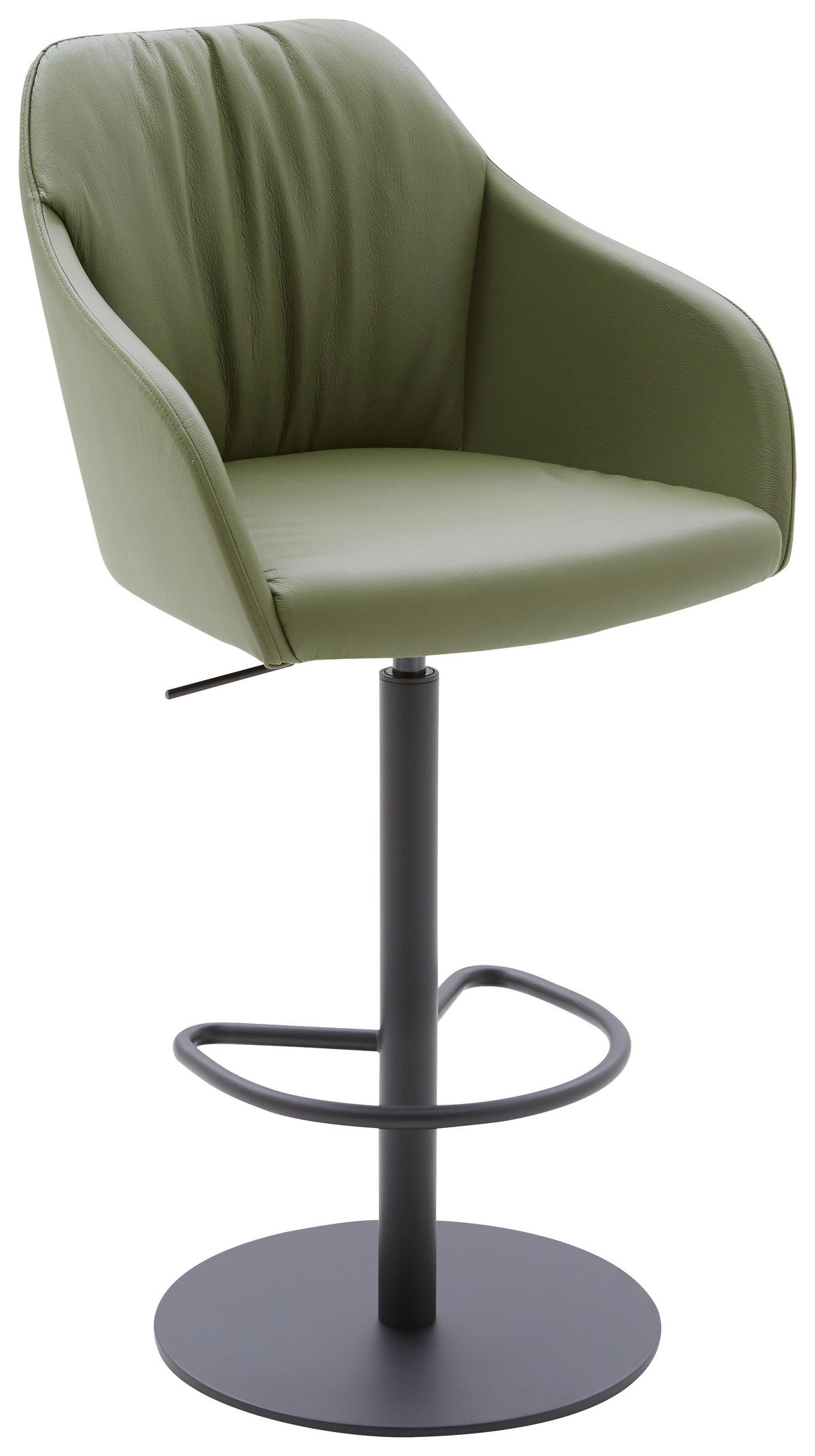 BARHOCKER Echtleder Olivgrün Stahl Sitzfläche 360° drehbar  - Schwarz/Olivgrün, Design, Leder/Metall (59/109,5-120/61cm) - Johann Jakob