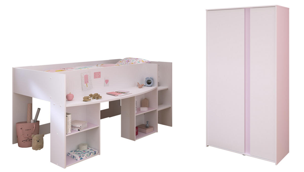 JUGENDZIMMER Pirouette 14 in Weiß mit Rosa oder Kieselgrau 2 teilig mit Hochbett