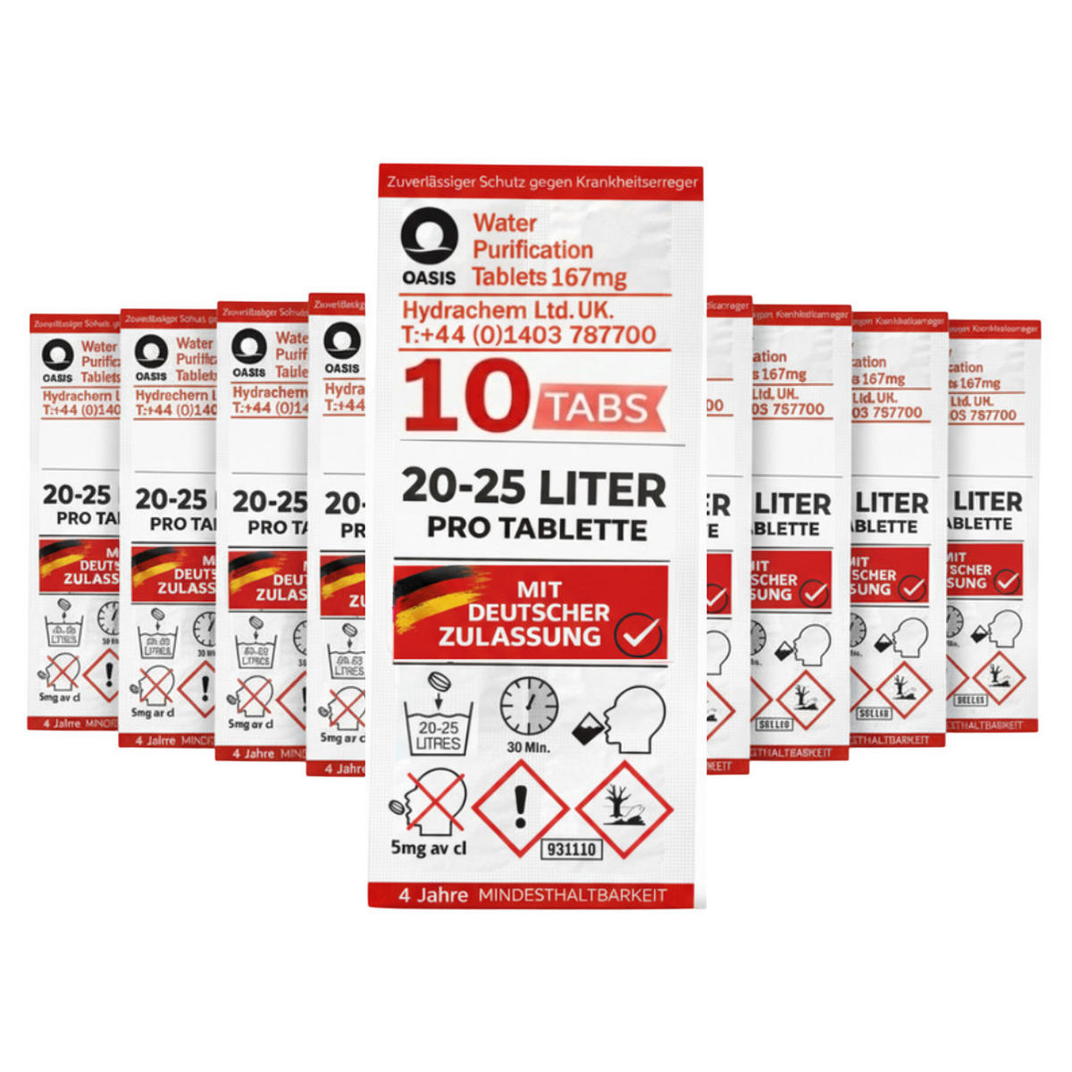 - Besonderheiten: Trinkwasseraufbereitung, entfernt Keime, kompakt lagerbar, einzeln verpackt, inkl. Faltkanister, ideal für Camping, Reise, Notfallvorsorge
