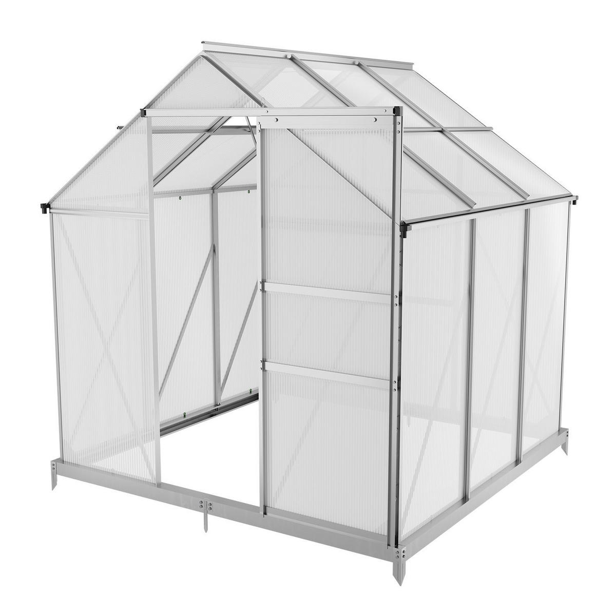 GEWÄCHSHAUS mit Dachfenster mit Tür mit Fundament, Alu+Polycarbonat, Grau+Transparent