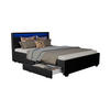 Das elegant designte Bett "Lyon" hat einen schicken und pflegeleichten Kunstlederbezug. Per Fernsteuerung schalten Sie die im Kopfende eingebaute LED Beleuchtung um und passen das Licht