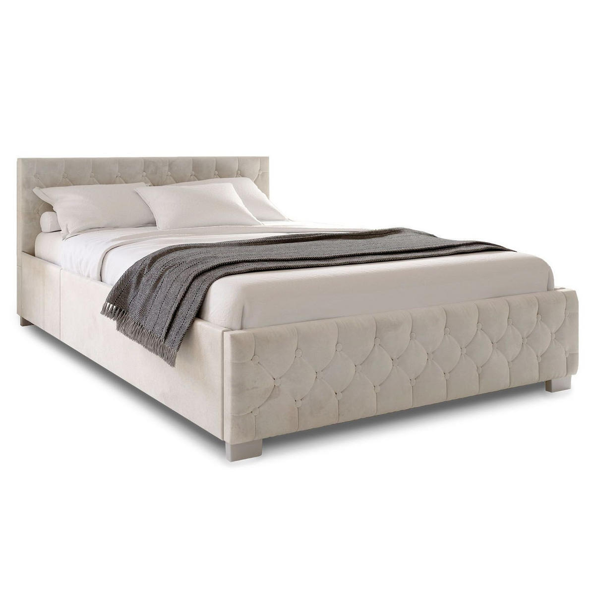 Polsterbett Nizza 140x200 cm in Beige mit Matratze, Bettkasten & LED-Beleuchtung