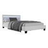Der Bettrahmen ist aus stabilem Holz gefertigt und mit einem gepolsterten Kunstlederbezug überzogen. Er gewährleistet einen sicheren Stand und viel Stabilität. Wie das Bettgestell / Bettrahmen ist auch der Lattenrost aus Holz. Die hölzernen Leisten dienen als Unterlage für die Matratze und tragen wesentlich zu einem hohen Schlafkomfort bei. Durch den Abstand zwischen den Leisten wird die Matratze gut mit Frischluft versorgt. Hohes Kopfteil mit LED-Beleuchtung
