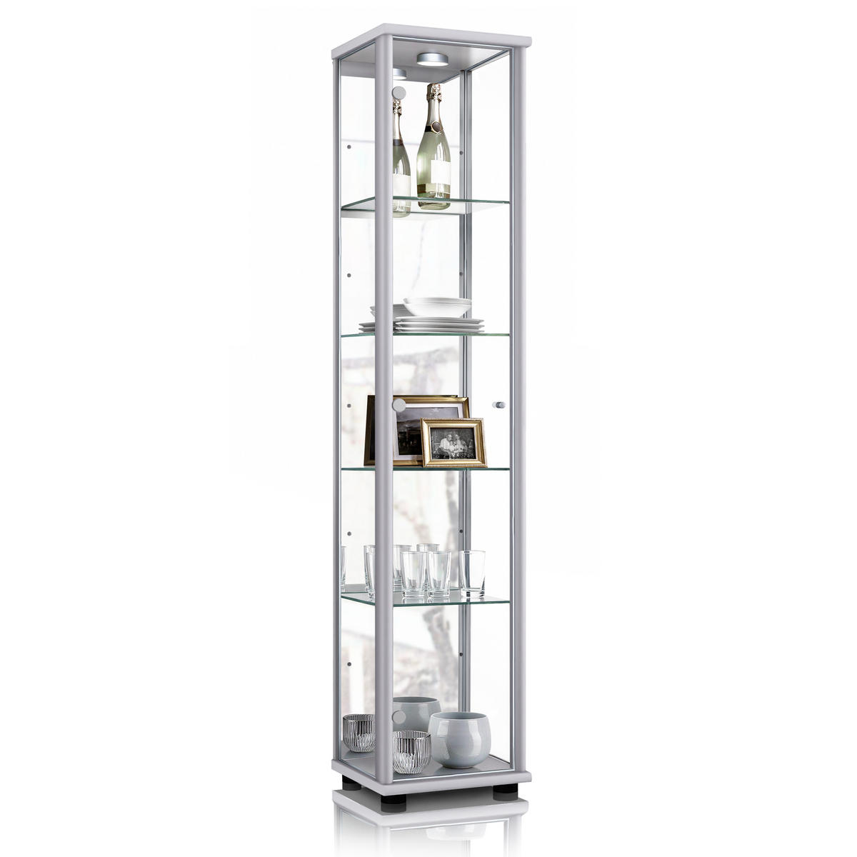 K-Möbel GLASVITRINE 33/37/176 cm mit Spiegel, LED & 4 höhenverstellbaren Glasböden