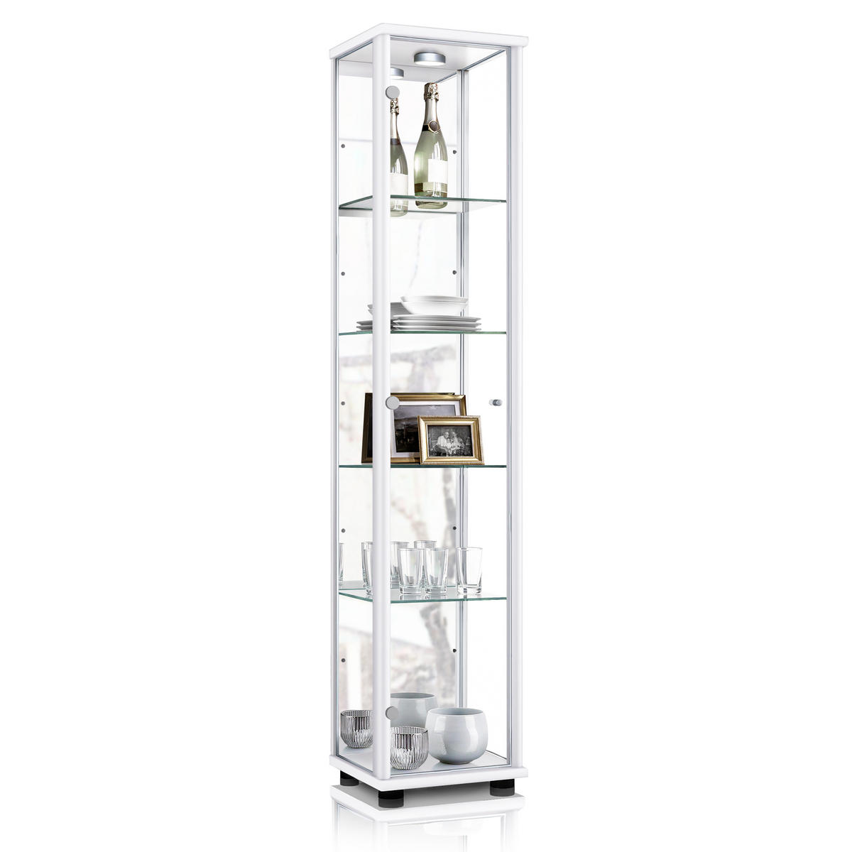K-Möbel GLASVITRINE 33/37/176 cm mit Spiegel, LED & 4 höhenverstellbaren Glasböden