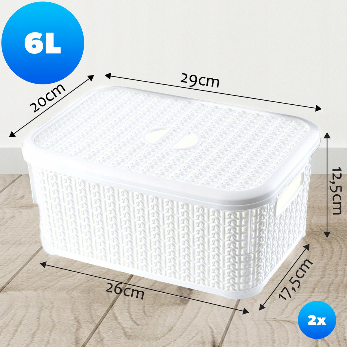 KADAX KORB mit Deckel 6L weiß, 2 Stk.
