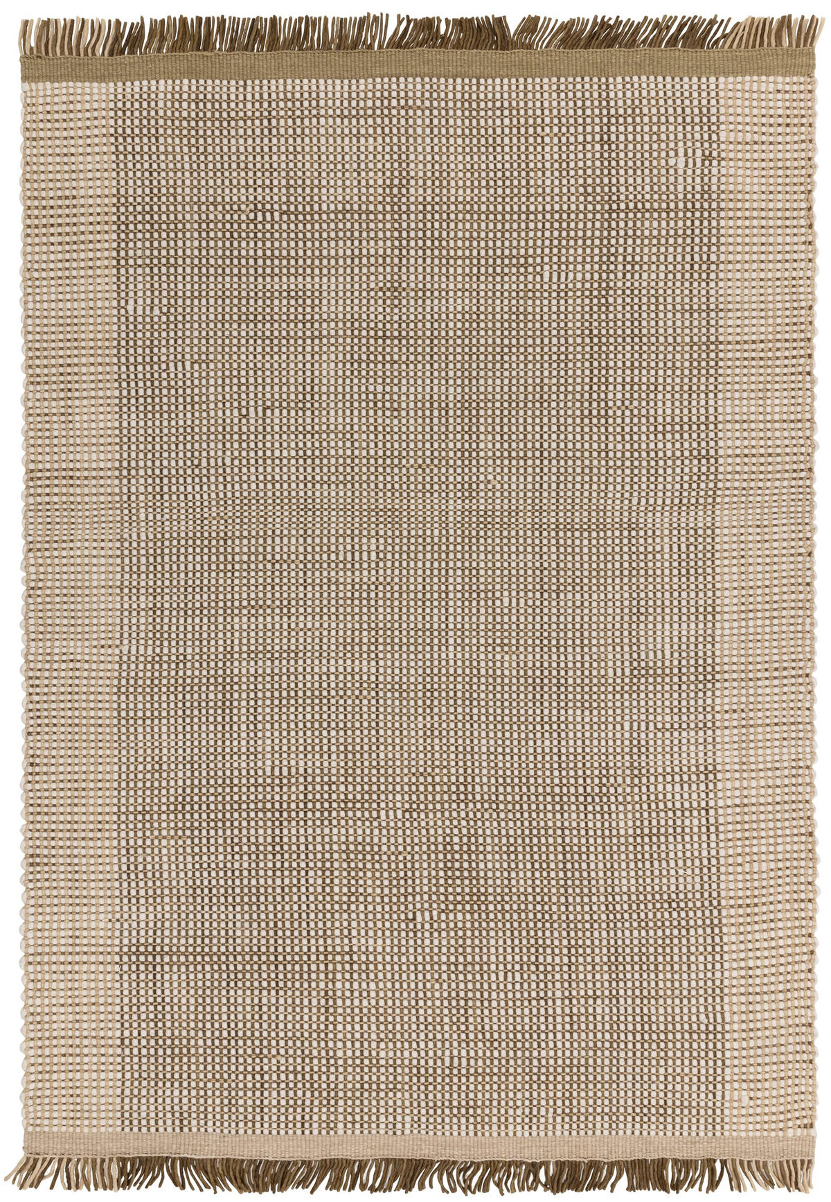 TEPPICH Wolle handgewebt mit Korbmuster Fransen PISA, Olivgrün 200x290 cm - Beige, Textil (200/290cm) - KADIMA DESIGN
