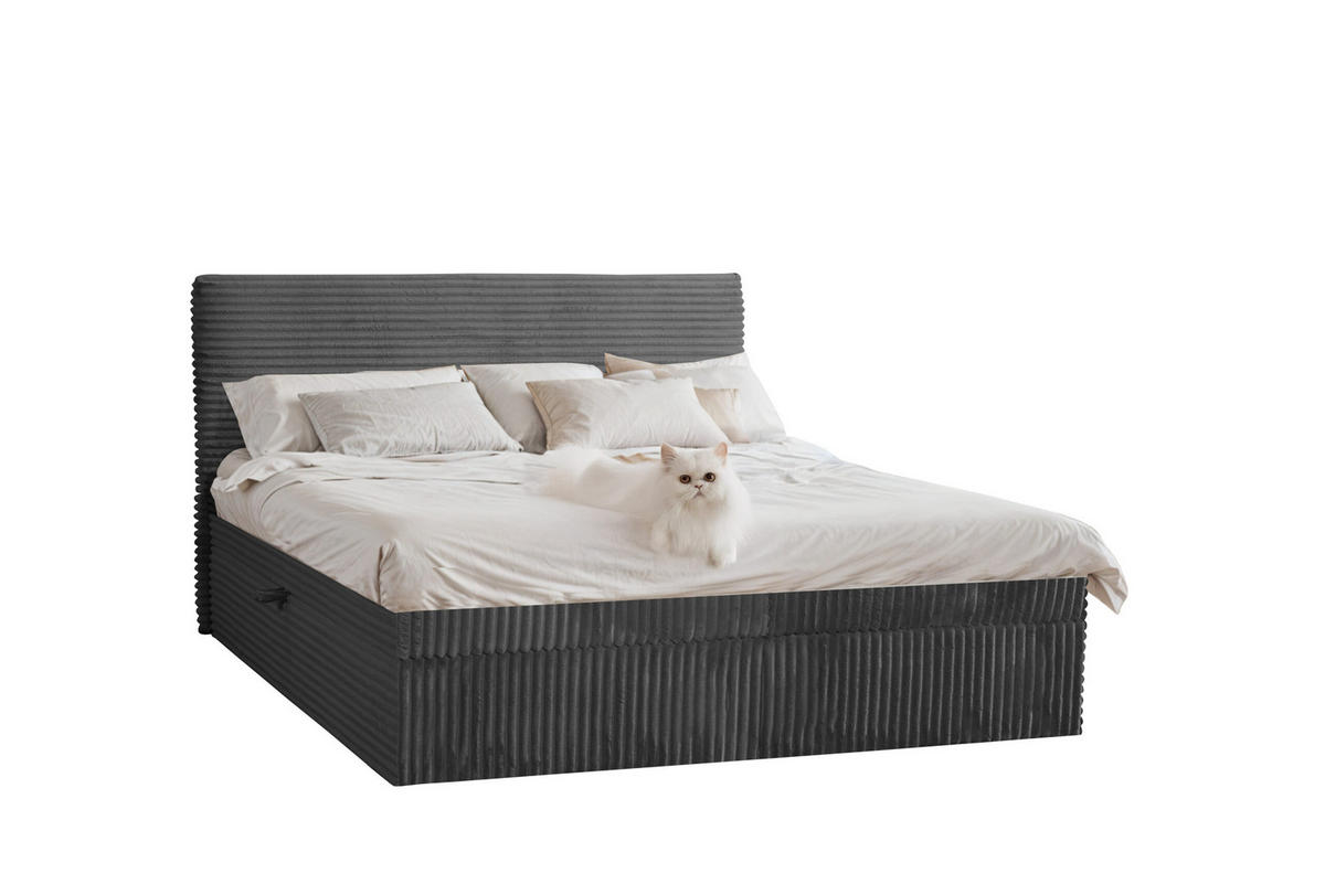Kaiser Möbel BOXBETT Bettkasten Und Topper TRENTO Ohne Bein Stoff Plüsch Cord 120x200 cm Graphit H2-Pocket