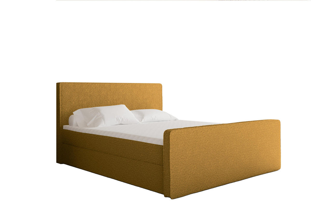 BOXBETT mit Bettkasten Matratze Topper LAGUNE Stoff Loop Senffarbe 120x200 cm H2-Pocket - Gelb, Holz/Holzwerkstoff (120/200cm) - Kaiser MöbelKaiser Möbel