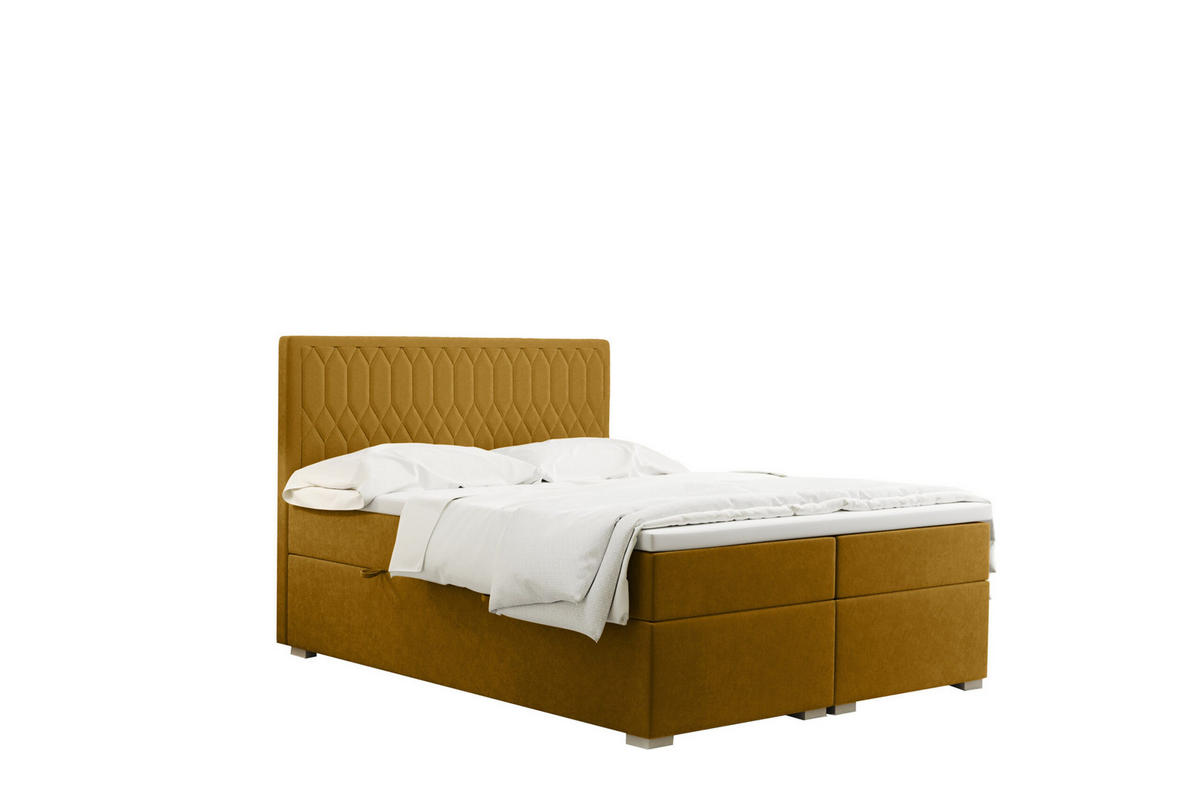 Kaiser Möbel BOXBETT Mit Bettkasten Matratze Topper RIMINI Stoff Riviera Gelb 200x200 cm H2-Pocket