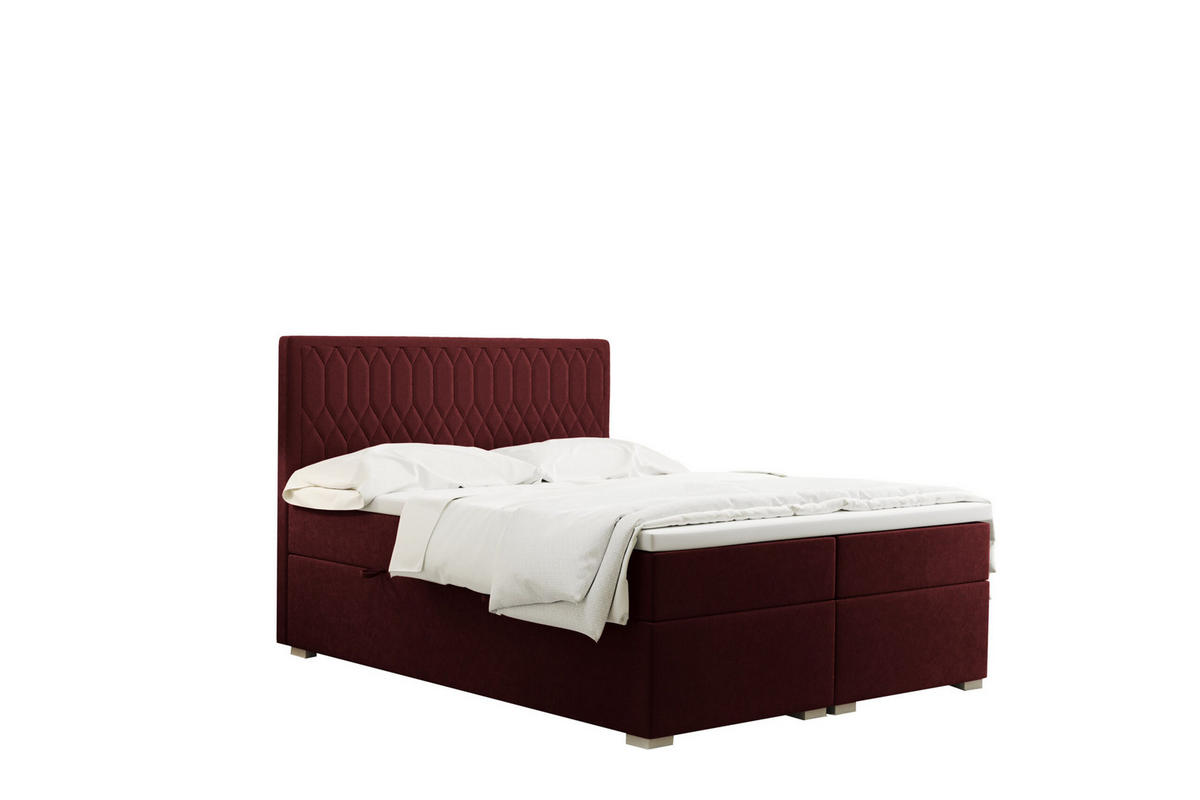 BOXBETT Mit Bettkasten Matratze Topper RIMINI Stoff Riviera Rotwein 120x200 cm H2-Pocket - Rot, Holz/Textil (120/200cm) - Kaiser MöbelKaiser Möbel