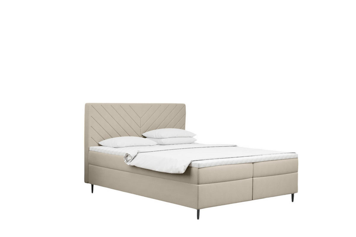 Kaiser Möbel BOXBETT Mit Bettkasten Und Matratze + Topper RUGIA Stoff Velvet Ecru 160x200 cm H3-Bonell