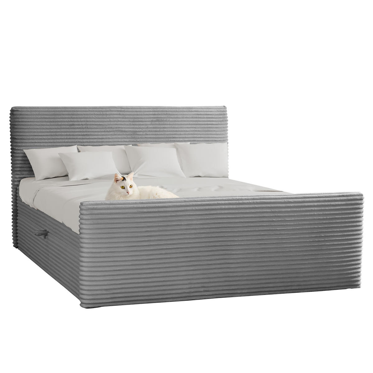 Kaiser Möbel BOXBETT Mit Bettkasten Und Topper TRENTO Stoff Plüsch Cord 180x200 cm Hellgrau H2-Pocket