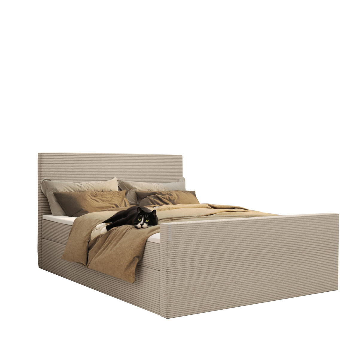 Kaiser Möbel BOXBETT Mit Bettkasten Und Topper VIESTA Stoff Poso Beige 140x200 cm H2-Pocket