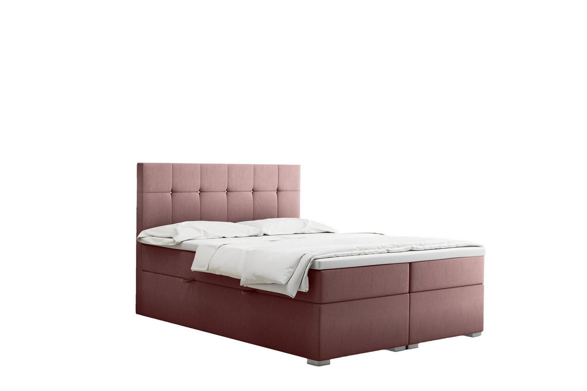 Kaiser Möbel BOXBETT Mit Matratze Und Bettkasten LINDT Stoff Velvet 180x200 cm Rosa H3-Bonell
