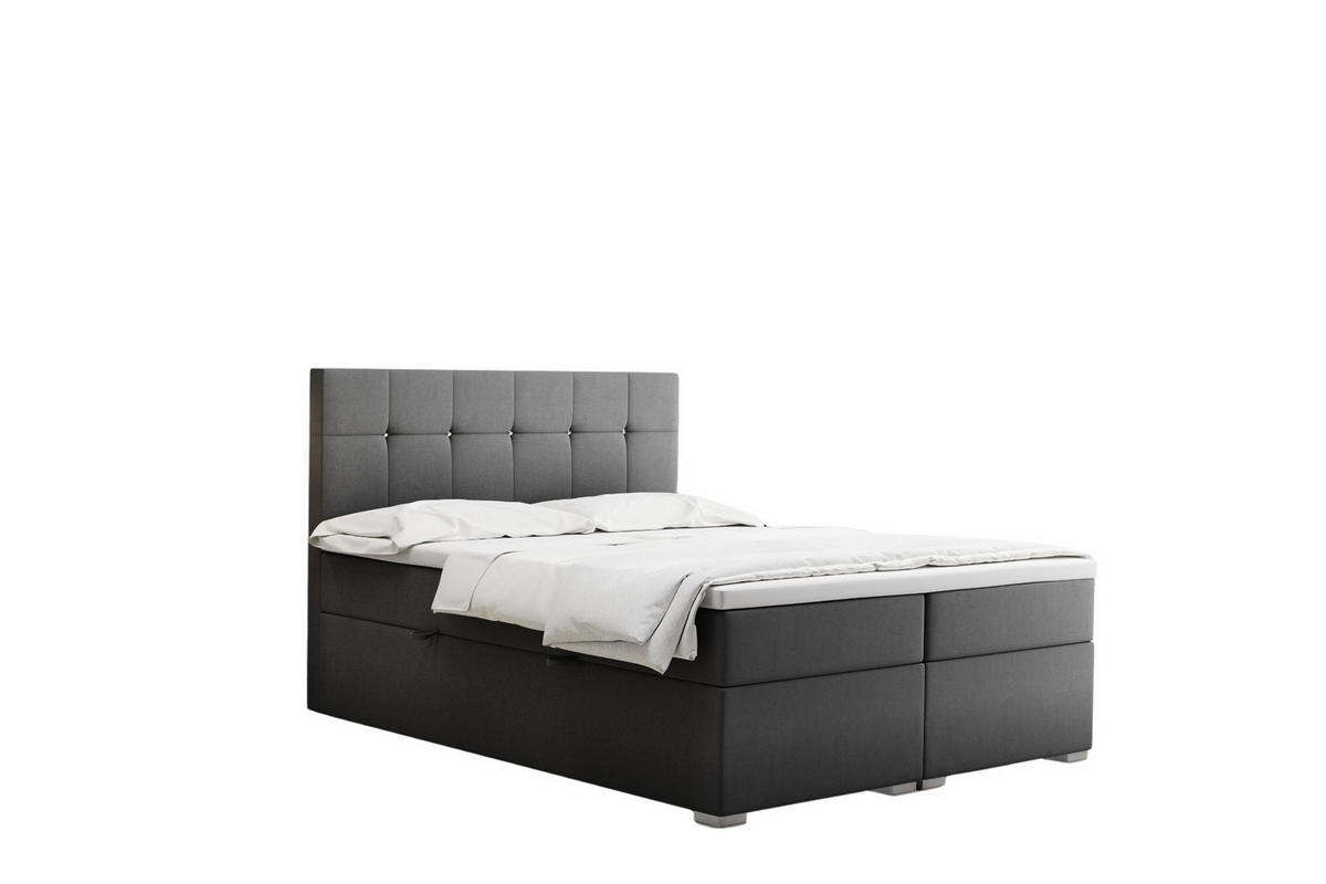 Kaiser Möbel BOXBETT Mit Matratze Und Bettkasten LINDT Stoff Velvet 200x200 cm Dunkelgrau H2-Pocket