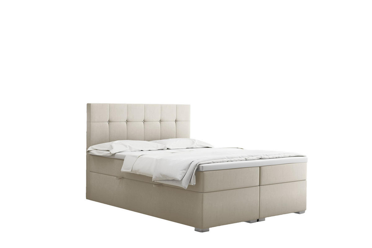 Kaiser Möbel BOXBETT Mit Matratze Und Bettkasten LINDT Stoff Velvet 200x200 cm Ecru H3-Bonell