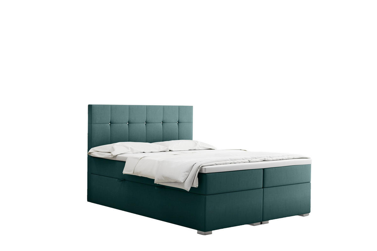 Kaiser Möbel BOXBETT Mit Matratze Und Bettkasten LINDT Stoff Velvet 200x200 cm Meeresfarbe H2-Pocket