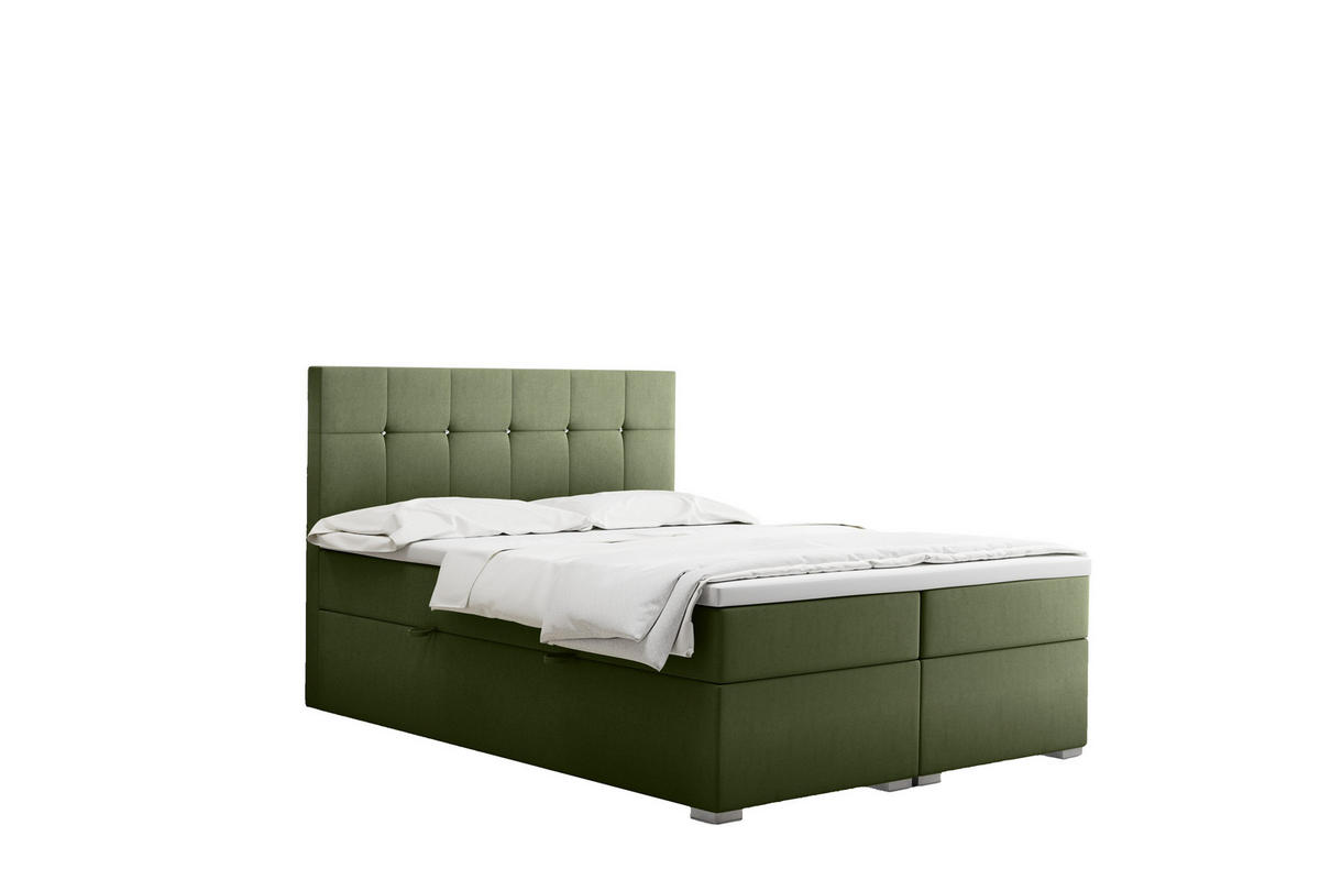 Kaiser Möbel BOXBETT Mit Matratze Und Bettkasten LINDT Stoff Velvet 200x200 cm Olive H3-Bonell