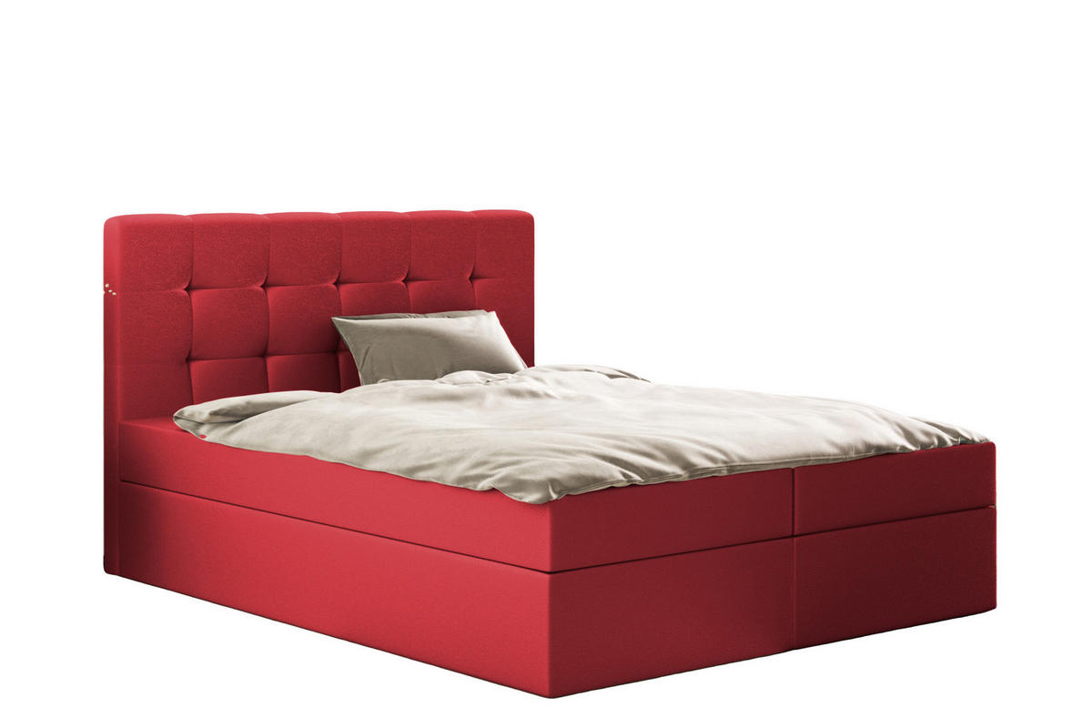 Kaiser Möbel BOXBETT Mit Matratze Und Bettkasten, LUDANO Stoff Cayenne Rot 120x200 cm H3-Bonell