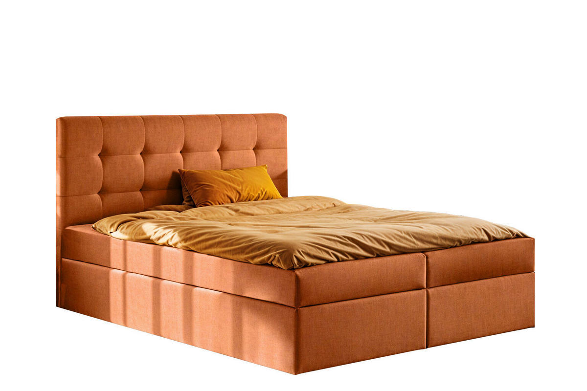Kaiser Möbel BOXBETT Mit Matratze Und Bettkasten LUDANO Stoff Noel Orange 140x200 cm H3-Bonell