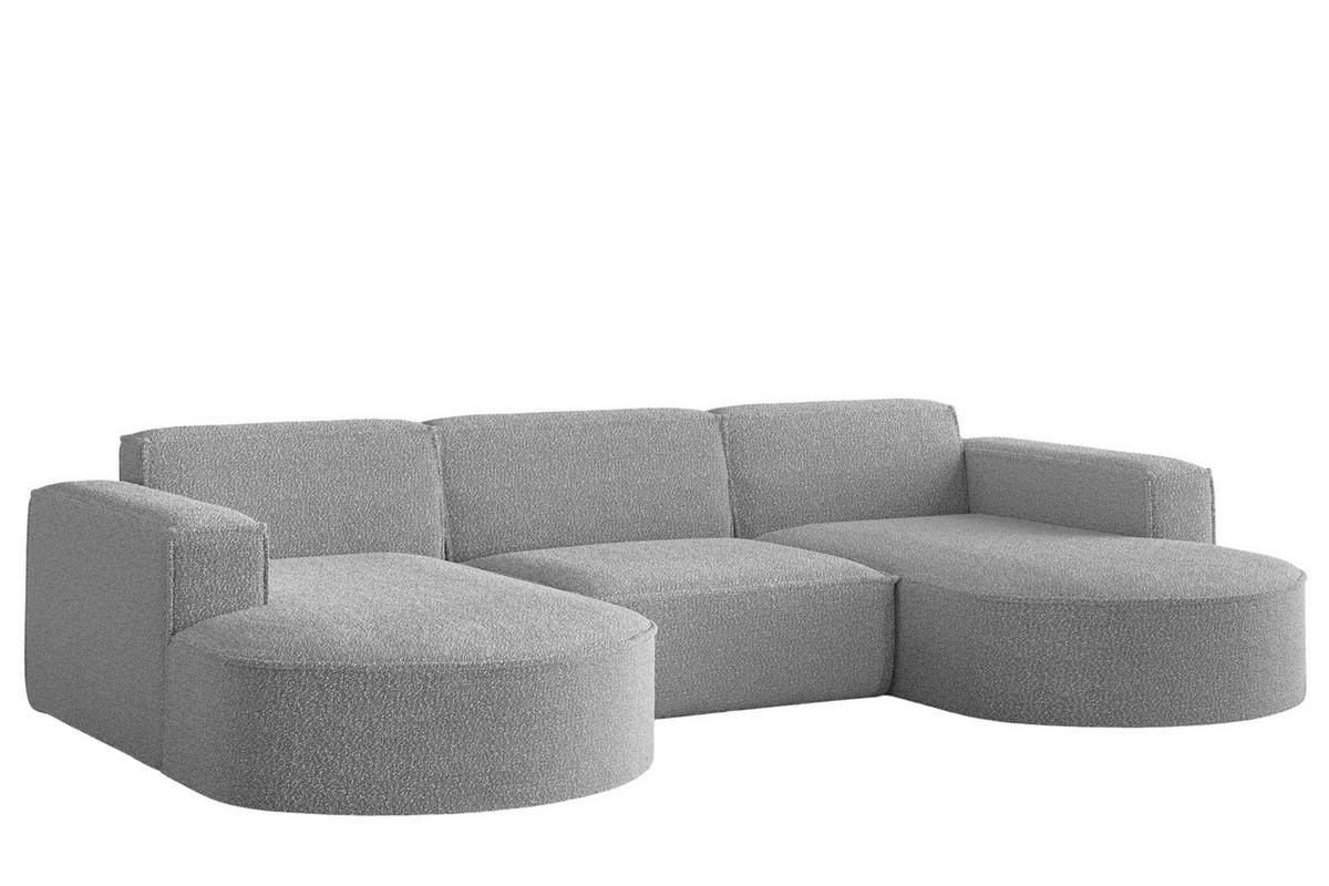 ECKSOFA Designer, Sofa U Form MODENA Stoff Loop Grau - Grau, Holz/Textil (299/165cm) - Kaiser MöbelKaiser Möbel