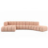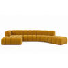 Das Velours-Ecksofa Grand L Round 445 cm verbindet modernes Design mit einer sanft geschwungenen Form. Es schafft einen stilvollen Mittelpunkt im Wohnzimmer und bietet viel Platz für Entspannung.
