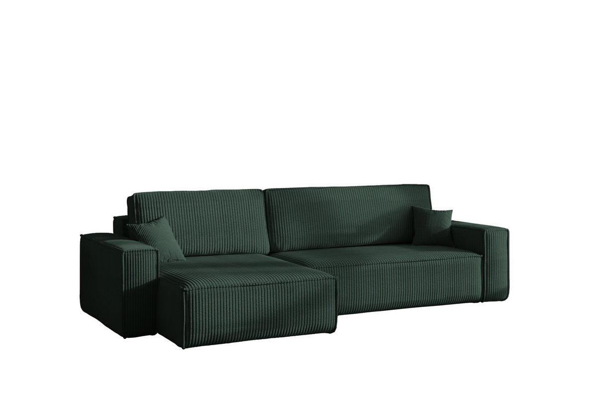 Kaiser Möbel ECKSOFA Mit Schlaffunktion Und Bettkasten, Eckcouch BEST XL Stoff Poso Dicker Cord Grün Links