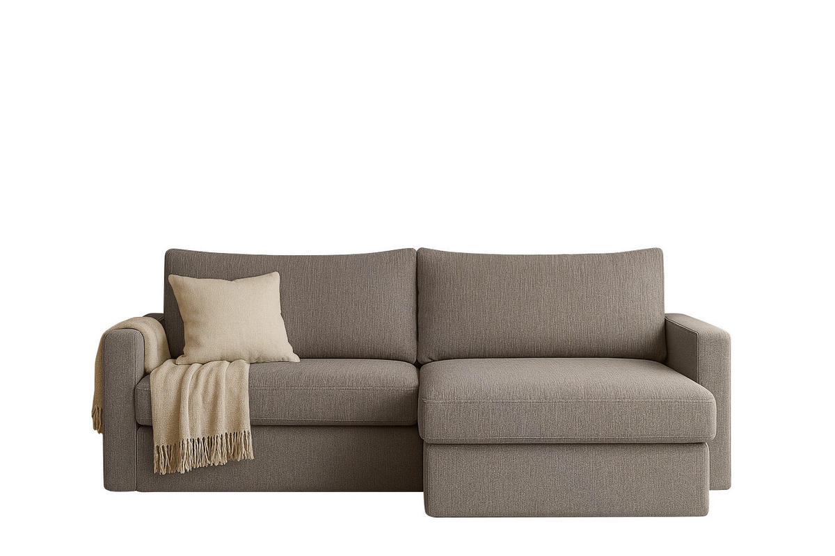 Kaiser Möbel ECKSOFA Mit Schlaffunktion Und Bettzeugablage LUBEKA Stoff Faro Hellbraun Rechts