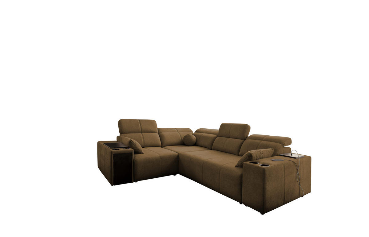 ECKSOFA Mit Schlaffunktion USB Und Verstellbarer Rückenlehne Mindy II Braun Links - Braun, Holz/Textil (219/288cm) - Kaiser MöbelKaiser Möbel