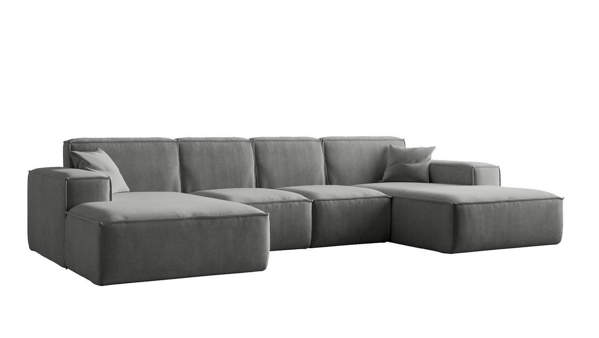 Kaiser Möbel ECKSOFA U-Form Siena, U-förmiges Ecksofa, Stoff Salvador Grau