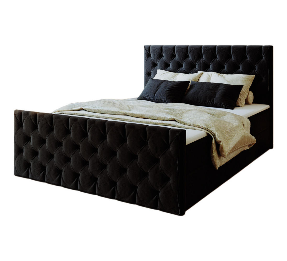 Ein Kontinentalbett definiert Ihr Schlafzimmer neu: reich verzierte Polsterung am Kopf- und Fußteil macht es zum dekorativen Highlight und gleichzeitig zum praktischen Bett mit Stauraum. Zwei Bettkästen verbergen Decken & Kissen, während hochwertige Materialien und solide Verarbeitung für beste Langlebigkeit sorgen. Genießen Sie ergonomischen Liegekomfort auf Bonell-Matratze und 4 cm HR-Topper.