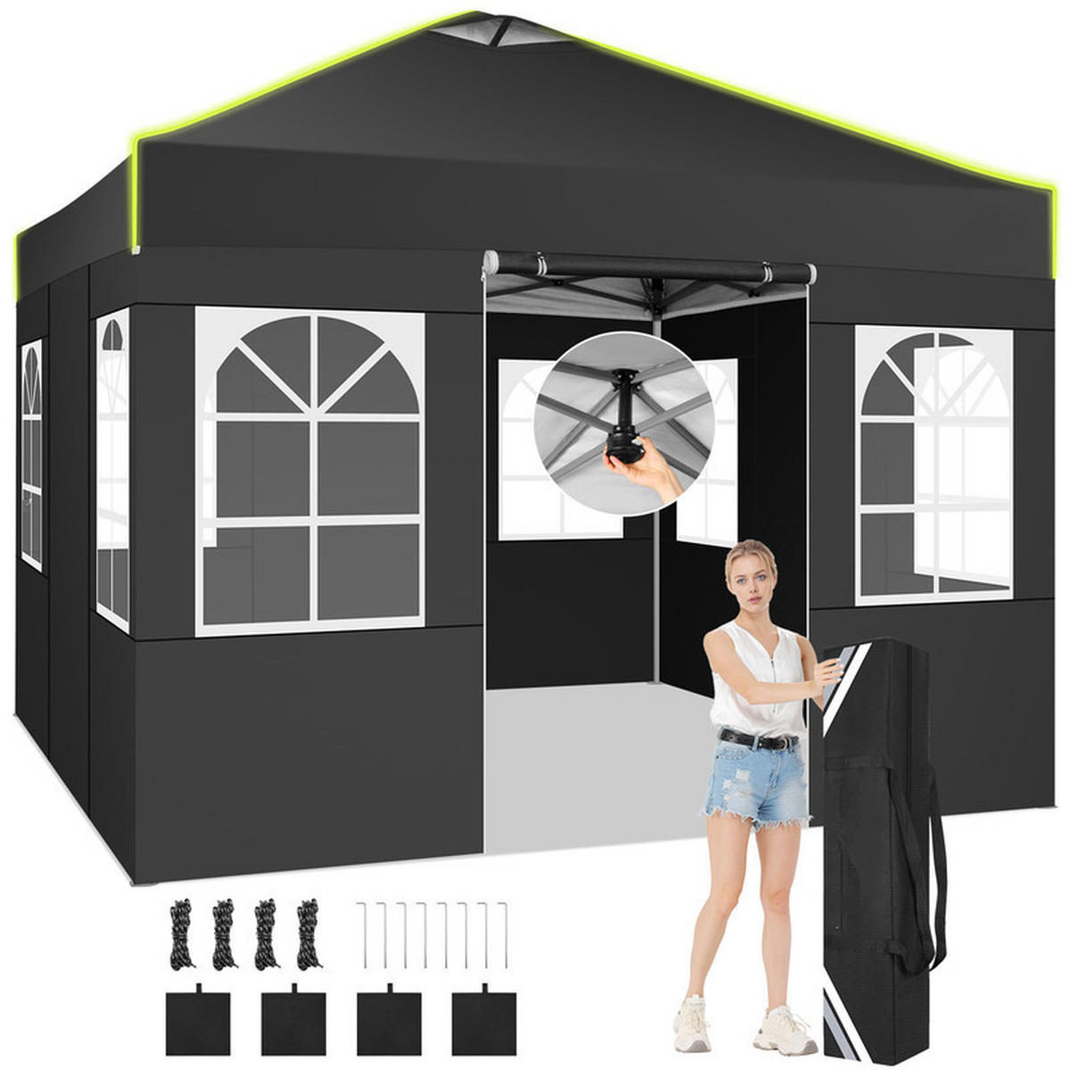 Kaket POP-UP-GARTENPAVILLON – 3×3 m, wasserdicht, UV-beständig, mit 4 Seitenwänden und Belüftungsöffnung