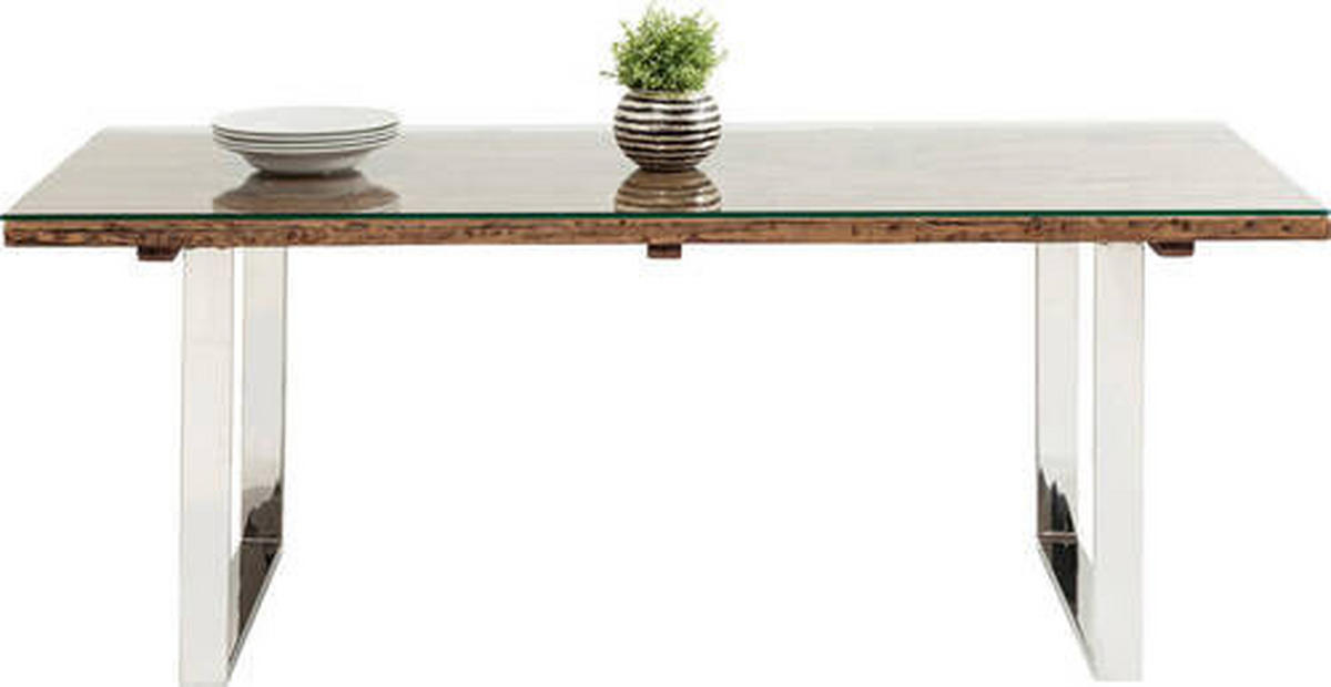 Kare-Design ESSTISCH 200/90/76 cm Echtholz Holz, Metall, Glas rechteckig Braun, Silberfarben