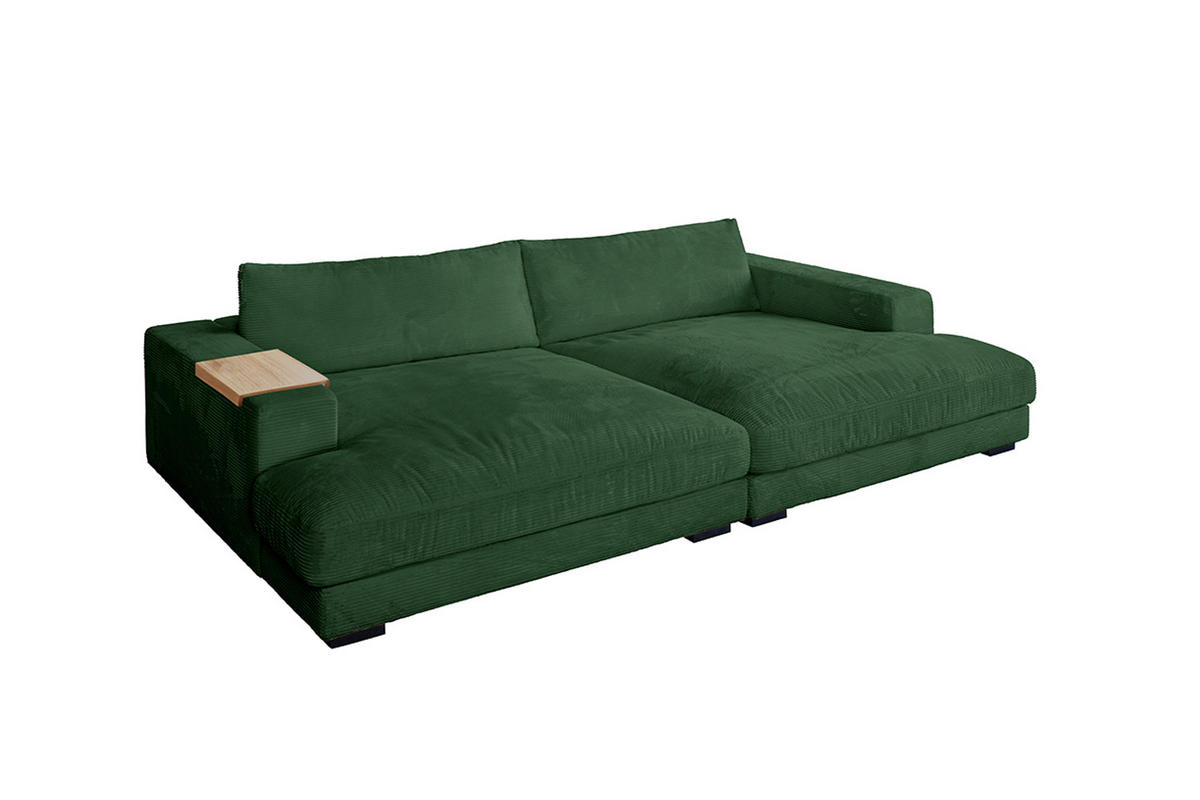 KAWOLA BIG SOFA MIT TABLETT NATUR MADELINE Smaragdgrün Cord