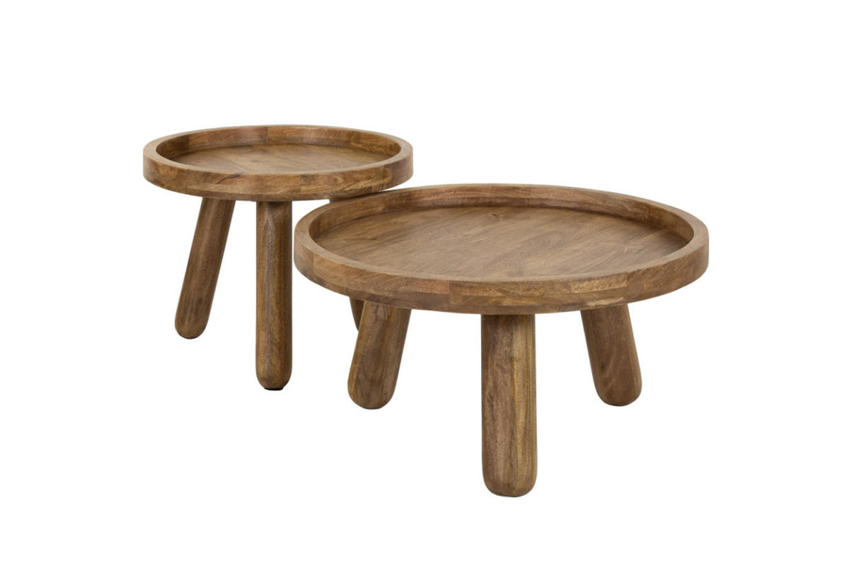 Das trendige Couchtisch-Set FLORA von KAWOLA ist aus robustem Mangoholz mit sandfarbener Oberfläche gefertigt. Die Tische haben eine erhöhte Kante, die für eine zusätzliche Dimension sorgt. Das Set besteht aus zwei Tischen, die flexibel kombiniert werden können. Der höchste Tisch hat einen Durchmesser von 60 Zentimetern und eine Höhe von 47 Zentimetern und der untere Tisch hat einen Durchmesser von 80 Zentimetern und eine Höhe von 41 Zentimetern. Ob im Wohnzimmer, in der Lounge oder als stilvolle Ablage – das Couchtisch-Set FLORA passt in jedes Zuhause und setzt ein echtes Design-Statement.