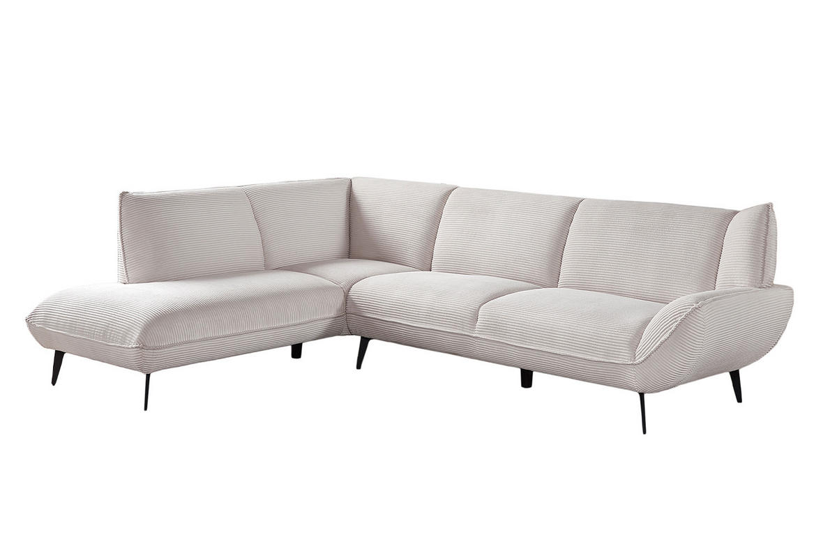 Die stabilen Metallfüße unterstreichen nicht nur das moderne Design, sondern gewährleisten auch eine sichere Basis. Ob beim gemütlichen Fernsehabend oder beim geselligen Beisammensein mit Freunden – das Ecksofa CALLA bietet einen einladenden Platz zum Verweilen.